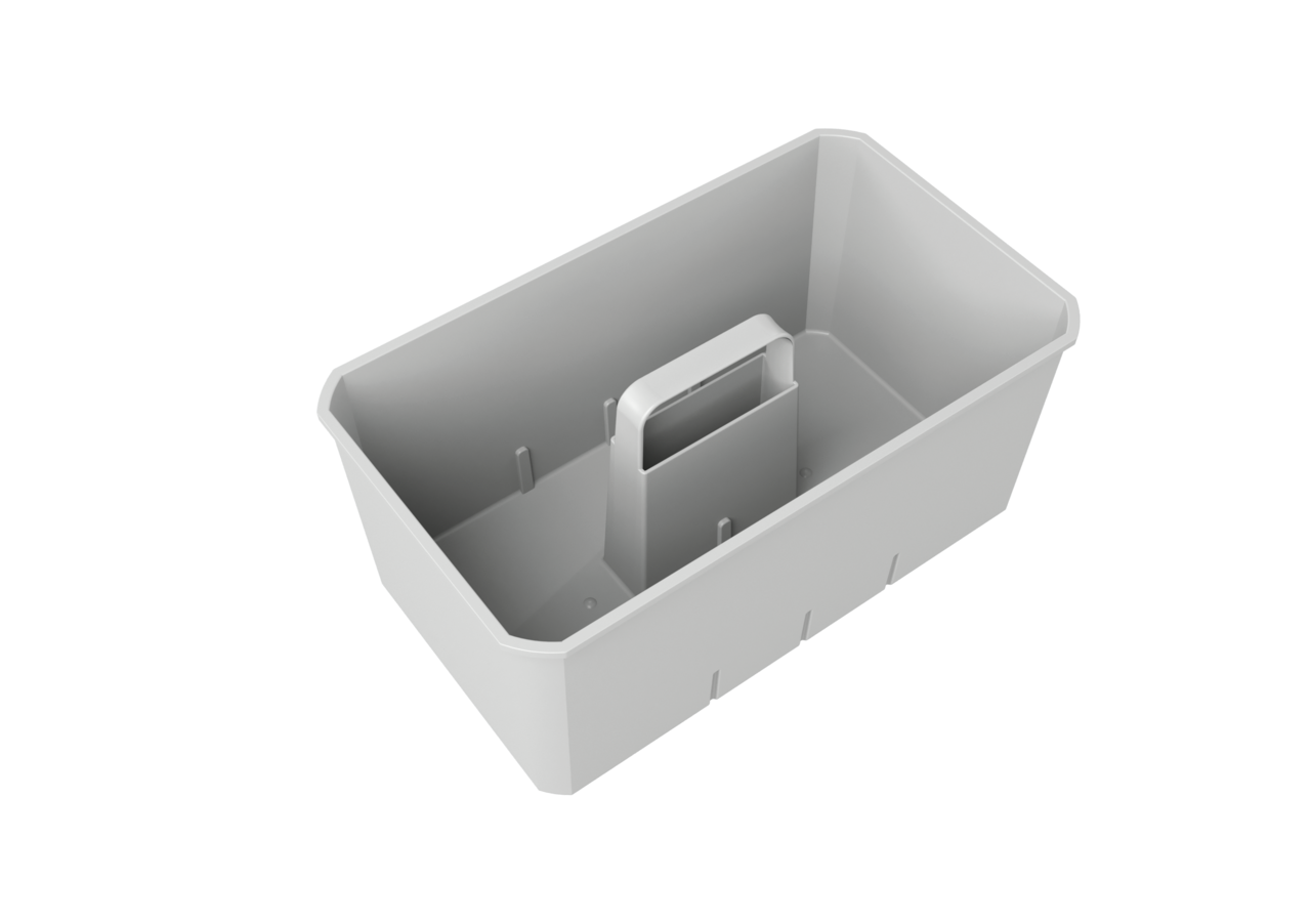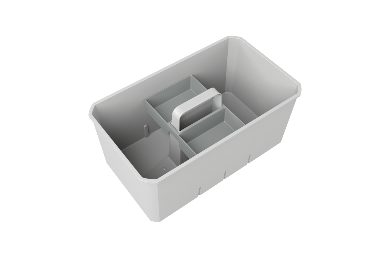 Utensilienbox. Zum Verstauen von z. B. Bürsten, Reiniger, Tabs und Tüchern.